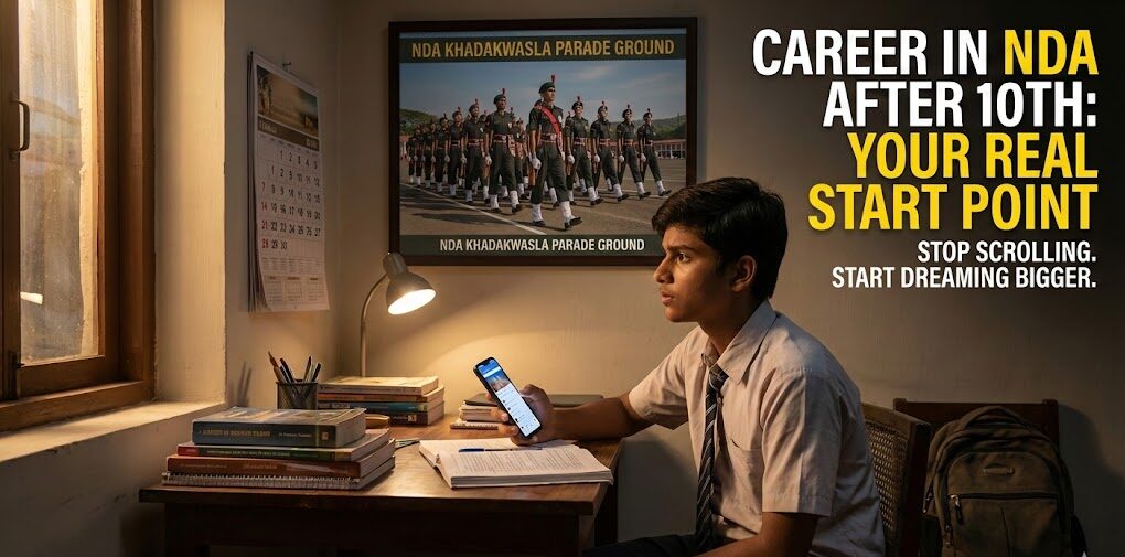 Option A: Safe khel – engineering → job → EMI → weekend Netflix Option B: Career in NDA After 10th – officer ban → country ke liye lad → log salute maare → life mein kabhi respect ki kami nahi