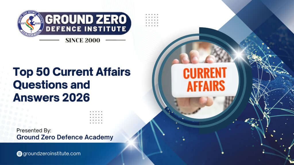 Top 50 Current Affairs Questions and Answers 2026 Current affairs are an essential part of every competitive examination, particularly for aspirants preparing for NDA, CDS, SSC, Banking, and UPSC. Staying updated with recent events helps improve exam scores while also strengthening overall general awareness, which is crucial for interviews and personality assessment rounds. This quiz […]