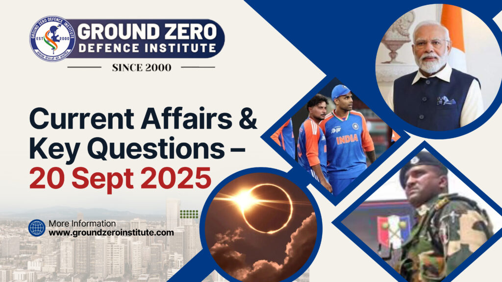 Daily Current Affairs & Key Questions for NDA & Competitive Exams – 20 September 2025 Introduction Today’s post presents the latest current affairs across politics, defence, science, economy, and sports, curated for NDA exam and competitive exam aspirants. Covering trending issues from the past 24 hours, this recap supports NDA preparation, SSB interview strategy, and […]