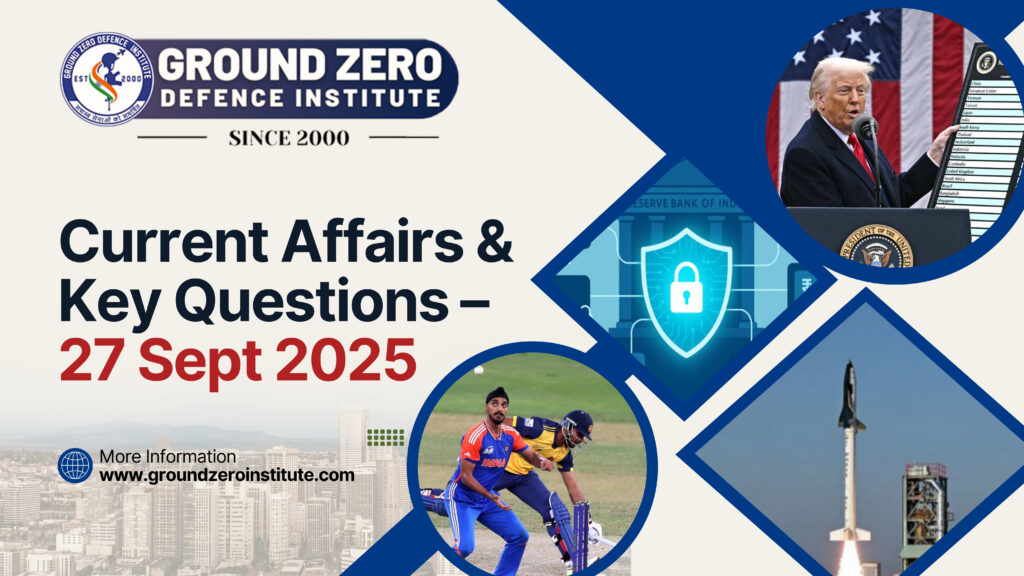 Daily Current Affairs & Key Questions for NDA & Competitive Exams – 27 September 2025 Introduction Today’s update brings the latest current affairs handpicked for NDA preparation, NDA exam, and other top competitive exams. Stay informed with diverse and recent news from politics, defence, economy, science and technology, sports, and more—vital for every aspirant aiming […]