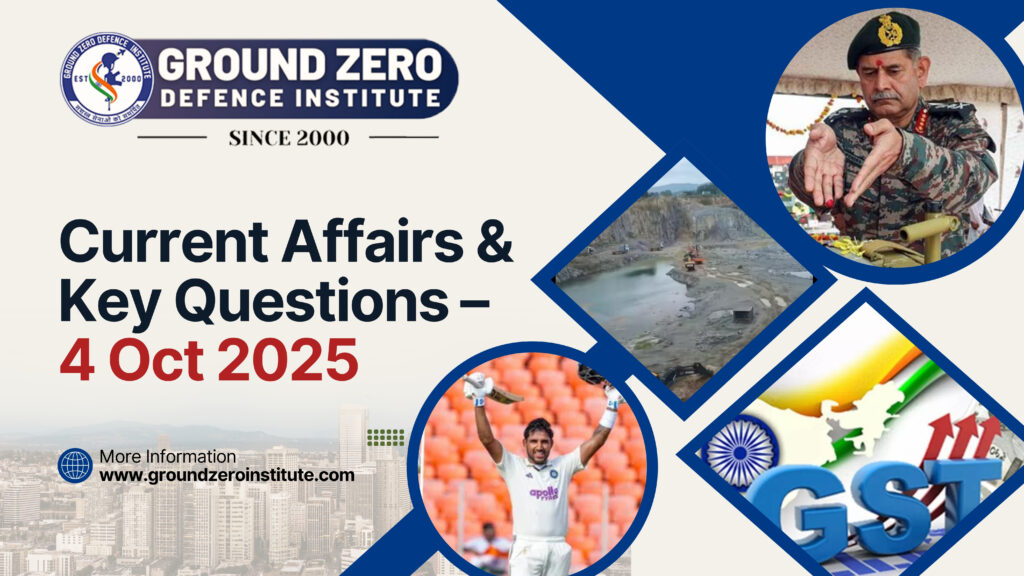 Daily Current Affairs & Key Questions for NDA & Competitive Exams – 4 October 2025 Introduction Stay updated with the latest current affairs essentials for NDA preparation and other competitive exams! This post summarizes today’s top stories across politics, defence, economy, geopolitics, technology, and sports, helping NDA exam aspirants cover the latest GK and trending topics crucial […]